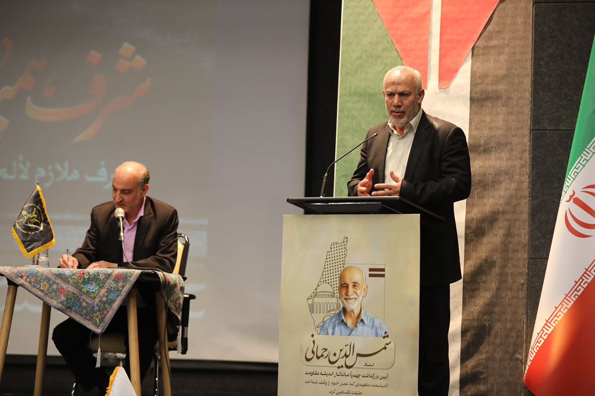 ناصر ابو شریف نماینده جنبش جهاد اسلامی فلسطین در ایران نیز در ادامه این مراسم بیان کرد: کسانی که از ابتدا تلاش کردند و تا امروز هم به این تلاش ادامه دادهاند، واقعاً مستحق تقدیر و احترام هستند و ما امروز در عمل نتایج این تلاشها را میبینیم.